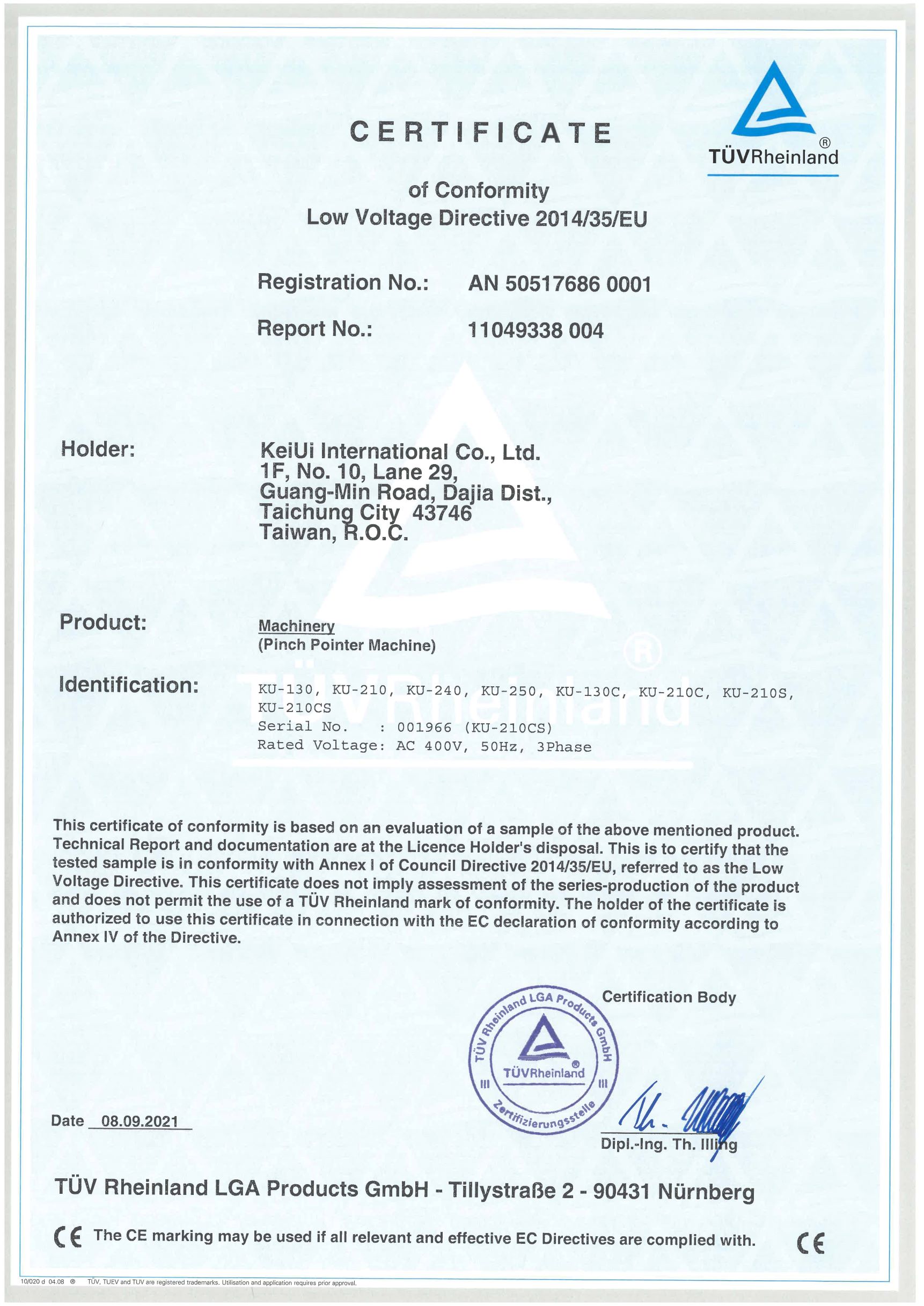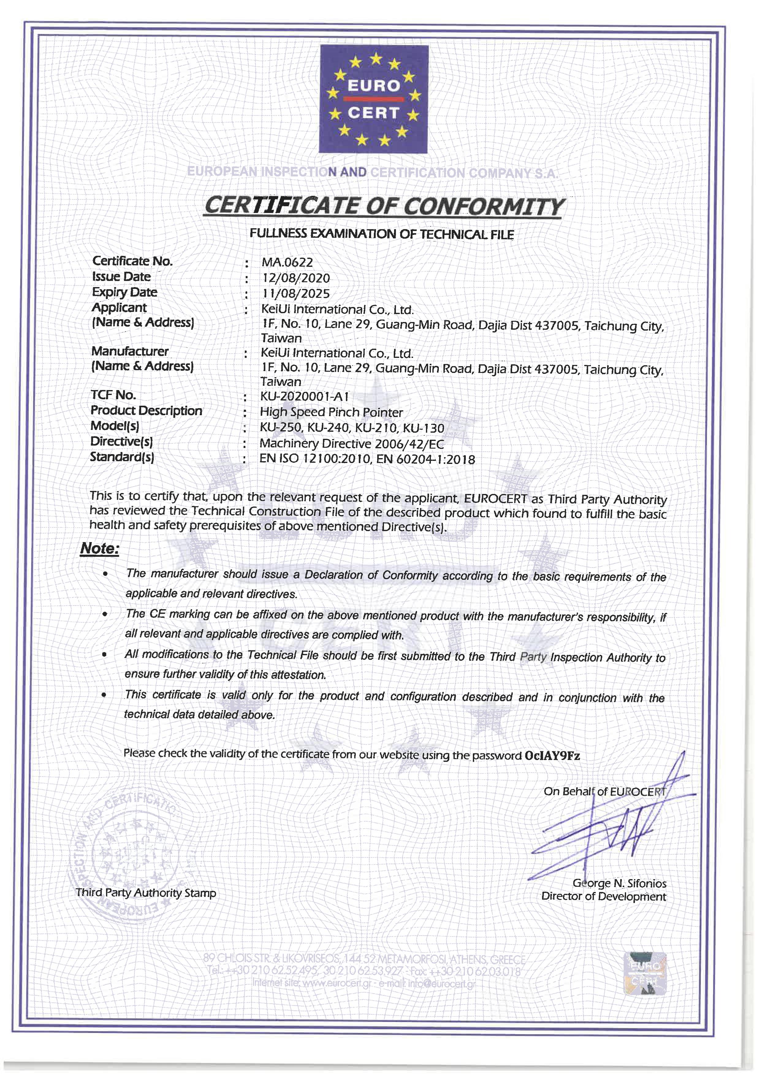 為提升及確保機器品質及使用安全,本公司機械產品已榮獲國內十餘項專利,並取得德國TÜV CE機械及電氣安全認證,為使用者提供高品質、高效率、高安全性的機械產品。